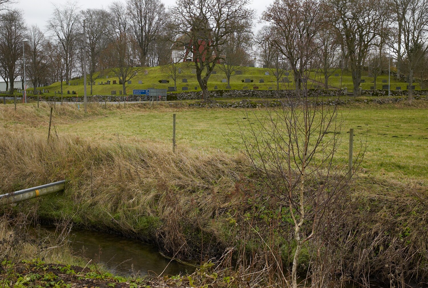 ![]() Efter att jag hittat det första av tre källflöden är det dags för det andra, här rinner det förbi Åsaka kyrka. |
