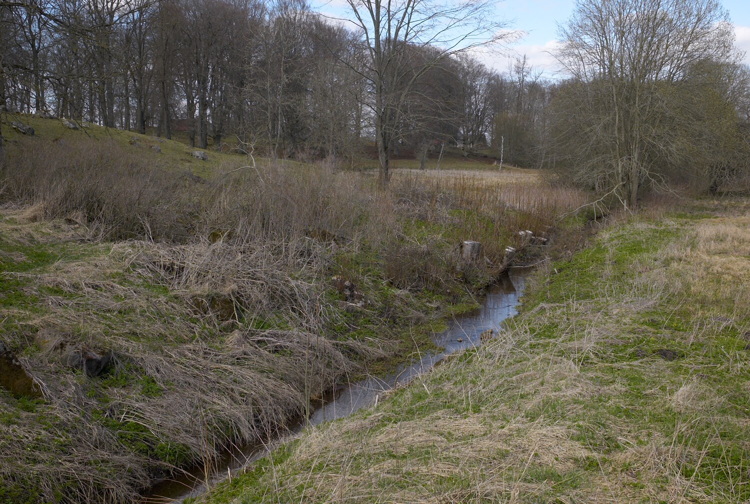 ![]() Det andra källflödet rinner här nedanför Vartofta gård. |