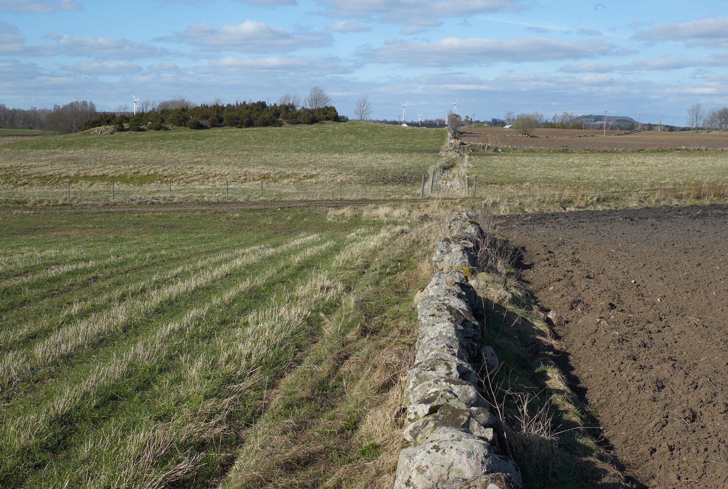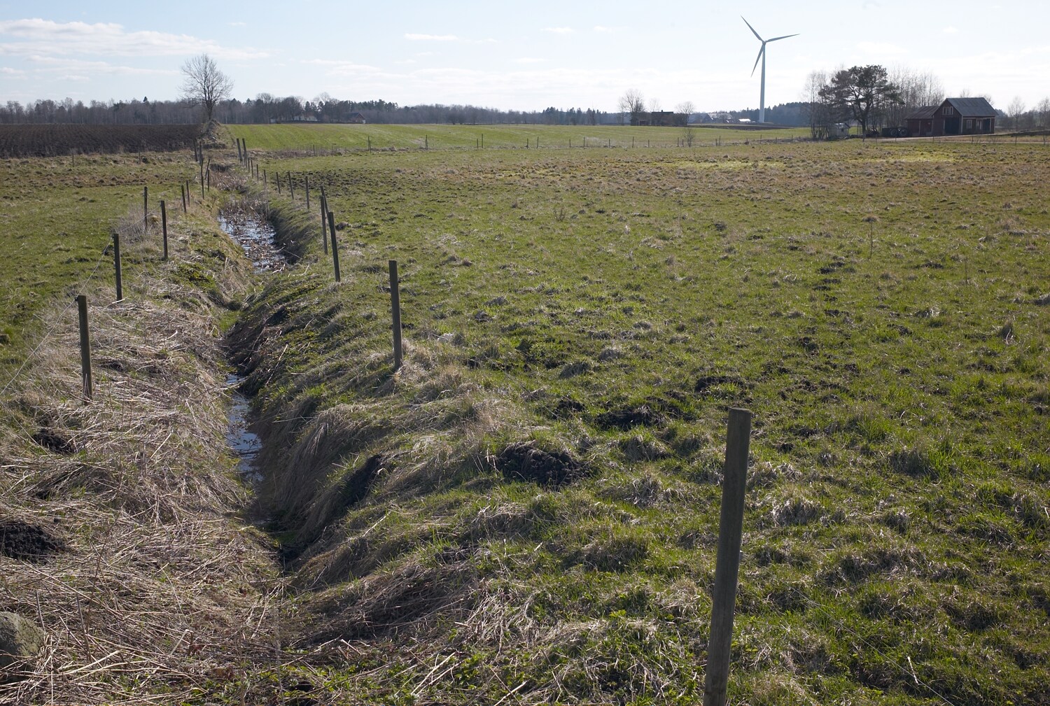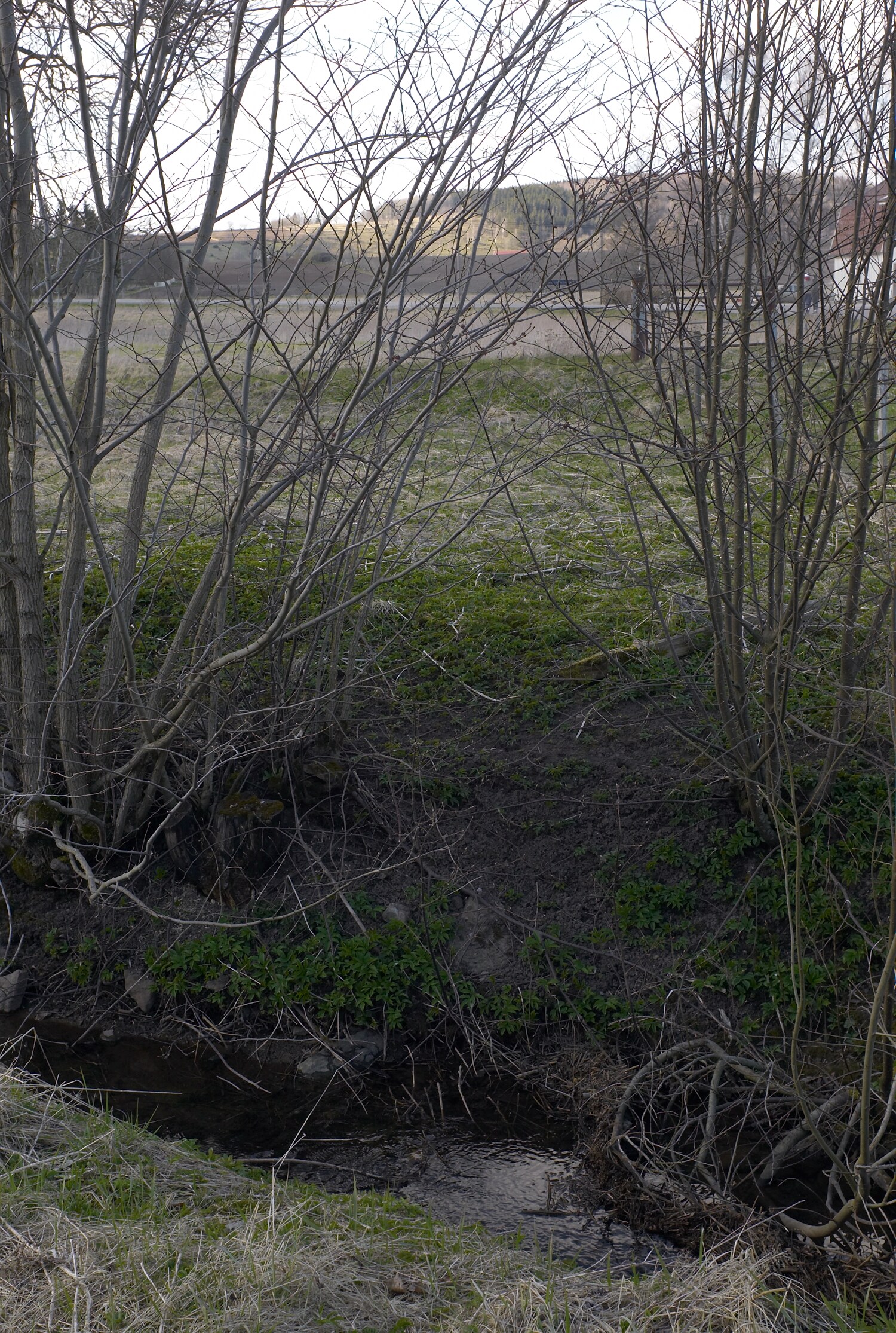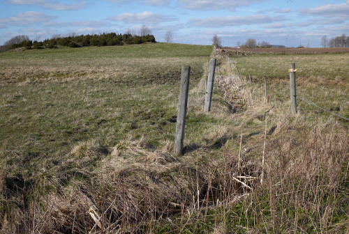 Från krönet av den lilla åsen som delar källflödena, diket strax nedan. |