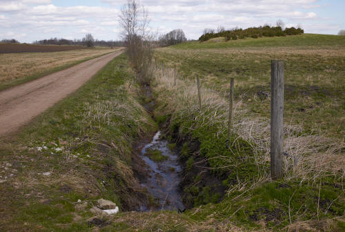 Diken i dalen. Bakom den lilla kullen rinner Slafsan. |