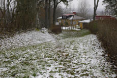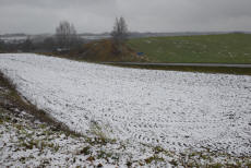 bakåt från fotografens plats, på åkern syns vid gynnsamma tider avtryck