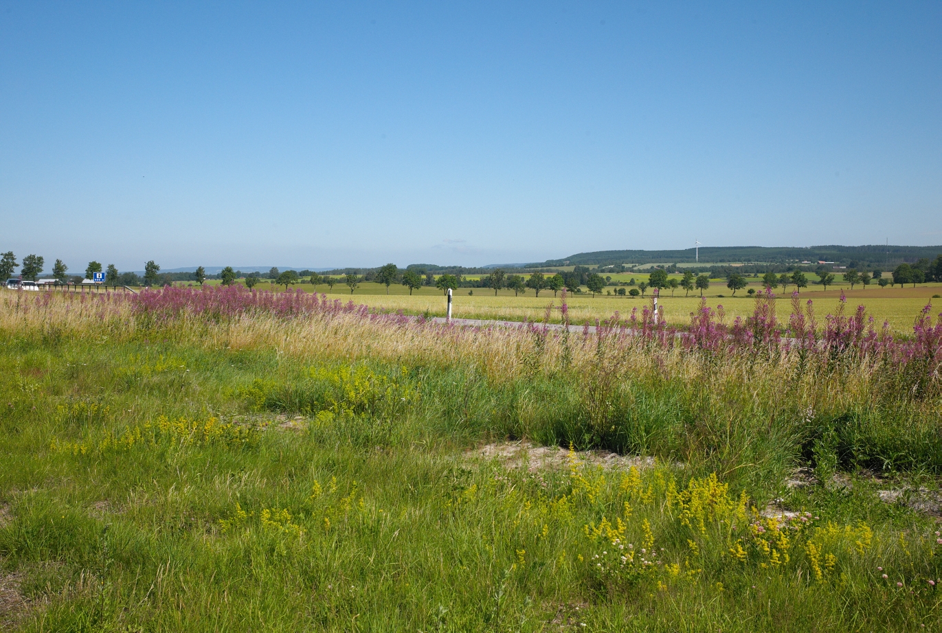 Bakom Rallarrosorna syns vägen mellan Falköping och Jönköping som än i