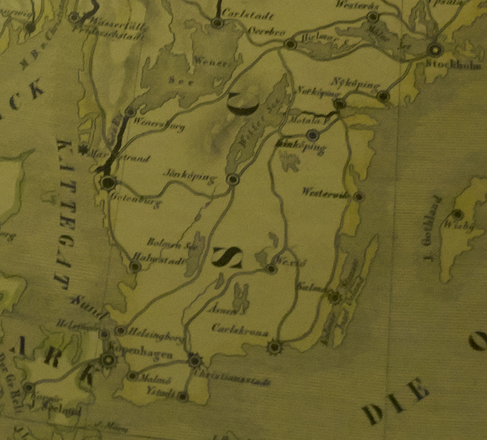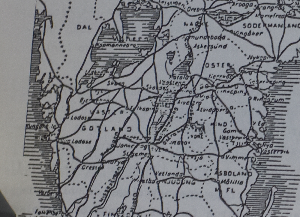 | Jönköping är formellt Sveriges äldsta stad eftersom den har Sveriges äldsta previlegiebrev från 1284, i dag är det lite svårt att tro det. Jönköping har inte bevarat särskilt mycket, det bästa med staden är Vätterstranden och fina omgivningar. Jönköping hade sina förbindelser inåt landet västerut via Eriksgatuleden, Jönköping- hålvägarna vid Sandhem - Slätäng - Leaby eller runt Vartoftadalen - Torbjörnstorp - Gudhem - Skara. På medeltiden tog det två dagar att tillryggalägga sträckan Skara - Jönköping. Man ska hålla i minnet att naturen var svårforcerad, det är ju först på senare år som riksväg 40 Göteborg- Jönköping blivit någorlunda färdig, fortfarande återstår sträckor att bygga ut (2009), i det perspektivet kan man tänka sig hur omständigt det var med transporter förr i tiden. Men och andra sidan var terrängförhållandena ett lås för främmande makter att erövra Sverige. Några vägsträckningar: Jönköping - Linnaryd vid n Unnaryd - Öresten - Härifrån antingen Ätrtanstigen till Halland eller vidare västerut. Jönköping - Bogesund - härifrån antingen via Ätranstigen norrut eller söderut - mot Göteborg och Lödöse. Jönköping - Ledhästra vid n Unnaryd - Timmerdala vid timmele korsar Ätranleden - Ljung - Alingsås. Jönköping - v Taberg - Unnaryd antingen längs Nissastigen eller korsa denna - Gölingstorp - Åstorp? - Svenljunga. Jönköping - lite söder om Oppensten där Ätranleden korsas - mot Varberg - mot Göteborg. Jönköping - n Unnaryd - Tranemo - Örsås - Ätranleden eller västerut. Jönköping - Oppensten - Öresten - Varberg, Enligt Gustav Vasa var detta enda vägen. (1500 tal) Jönköping - Jönköping - Unnaryd - Ljunarp - Tranemo också mot Reftele och - Gislaved via Nissastigen - Svenljunga eller Örsås och korsningen Ätranstigen - Örby och korsningen Viskaleden - Hyssna - Kärra - Härryda - Nylödöse. 1026 Olof den helige transporterade sig landvägen från Kalmar till Norge efter slaget i Helge å., den enda rimliga vägen sträcker sig via Jönköping och genom Vartoftadalen för vidare färd mot Norge. Han tog sig fram lugnt och städat genom Småland och Västergötland på väg hem, därav blev han populär och Olofsmyten började här längs färdvägen , Olofsmyten var intensiv längs färdvägen och pågick kanske längst i dessa trakter. 1563 - 1570 Nordiska sjuårskriget, se nedan. 1612 var Svenljunga en central plats under kriget (Älvsborgs lösen) hertig karl residerade här ett tag. 1618 ungefär samma sak Gustav II Adolf. När man studerar kartan finner man att de gamla landsvägarna torde vara tämligen liga i dragningarna från medeltiden och landskapet är här lite snällare mot resenärerna. Efter freden i Brömsebro 1645 blev allt annorlunda. | ||