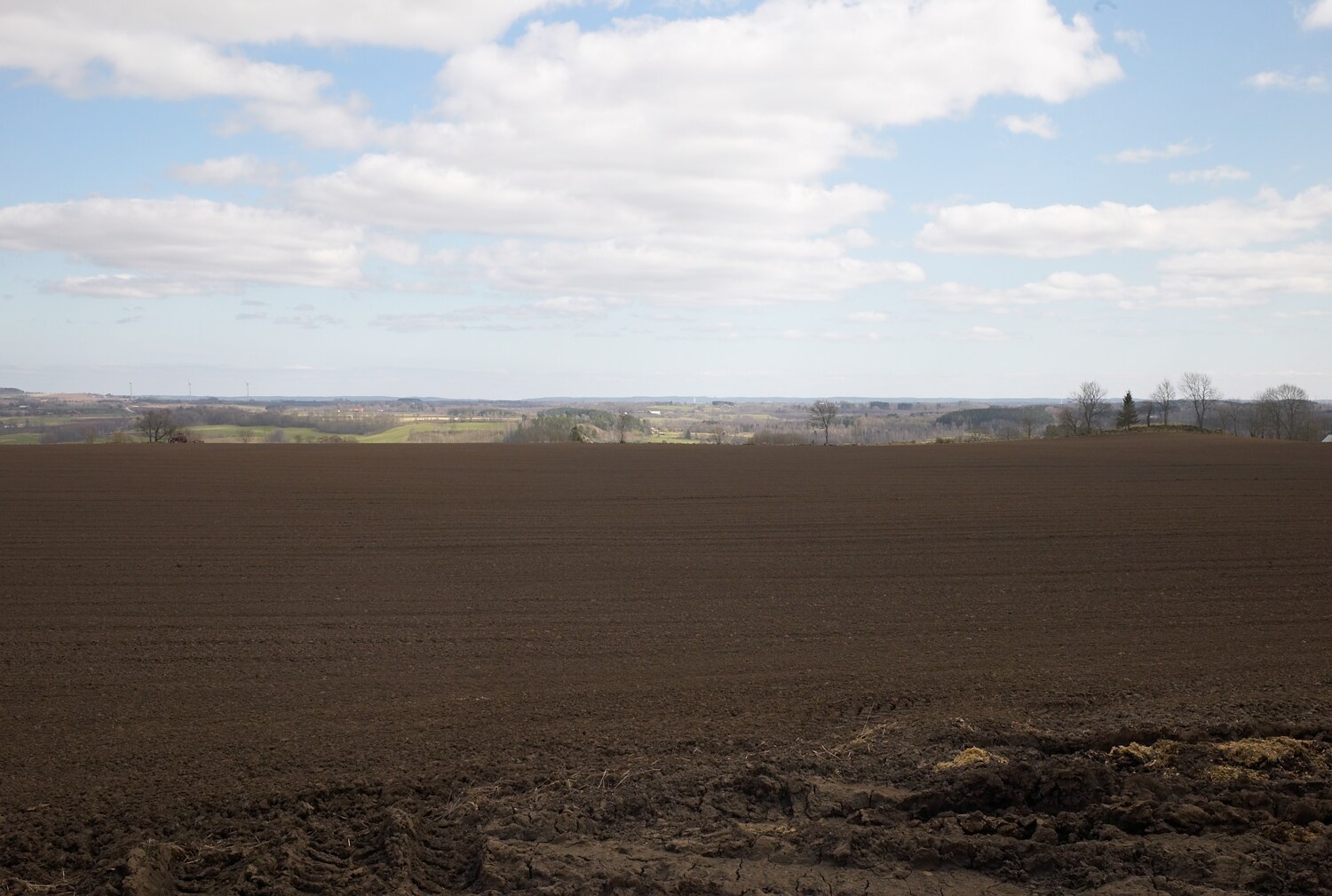 Vägen från Saleby upp mot Ållebergs topp. Saleby tydligast på