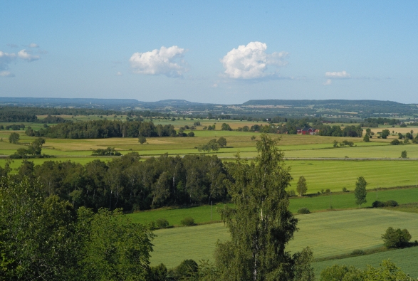 norrut till Torbjörnstorp - Gudhem - Skara - Nidaros. Gerumsberget och dalen i bild från norra ändan. |