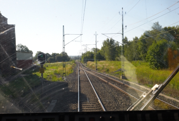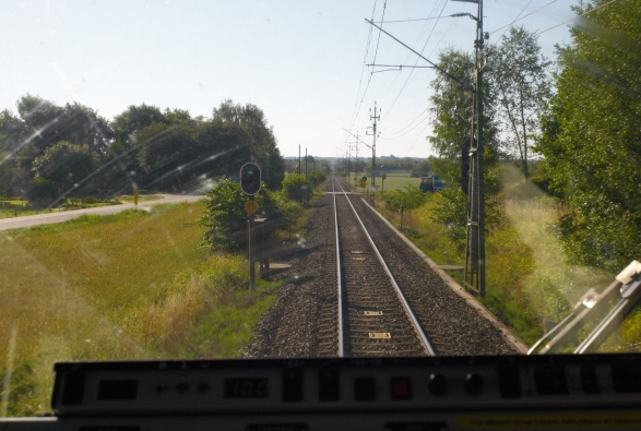 Järnvägsbanken, som en liten upphöjning i vägbanan. |