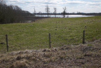 Vartoftasjön en grundvattensjö som genom täckdikning kanske har förbindelse med källflödena. Markerna är ganska sanka så vattnet hittar till källflödena får man förmoda. |